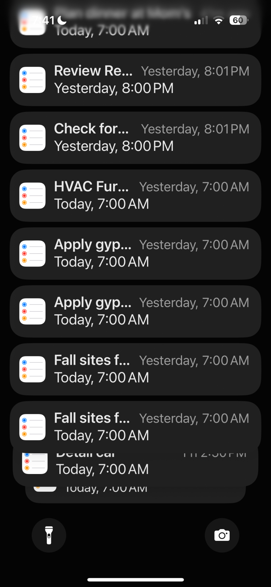 The Reminders notifications display the date in the top-right, which sometimes obscures the reminder text, especially when it says "Yesterday." Is there a way to make the text more visible and reduce this issue?