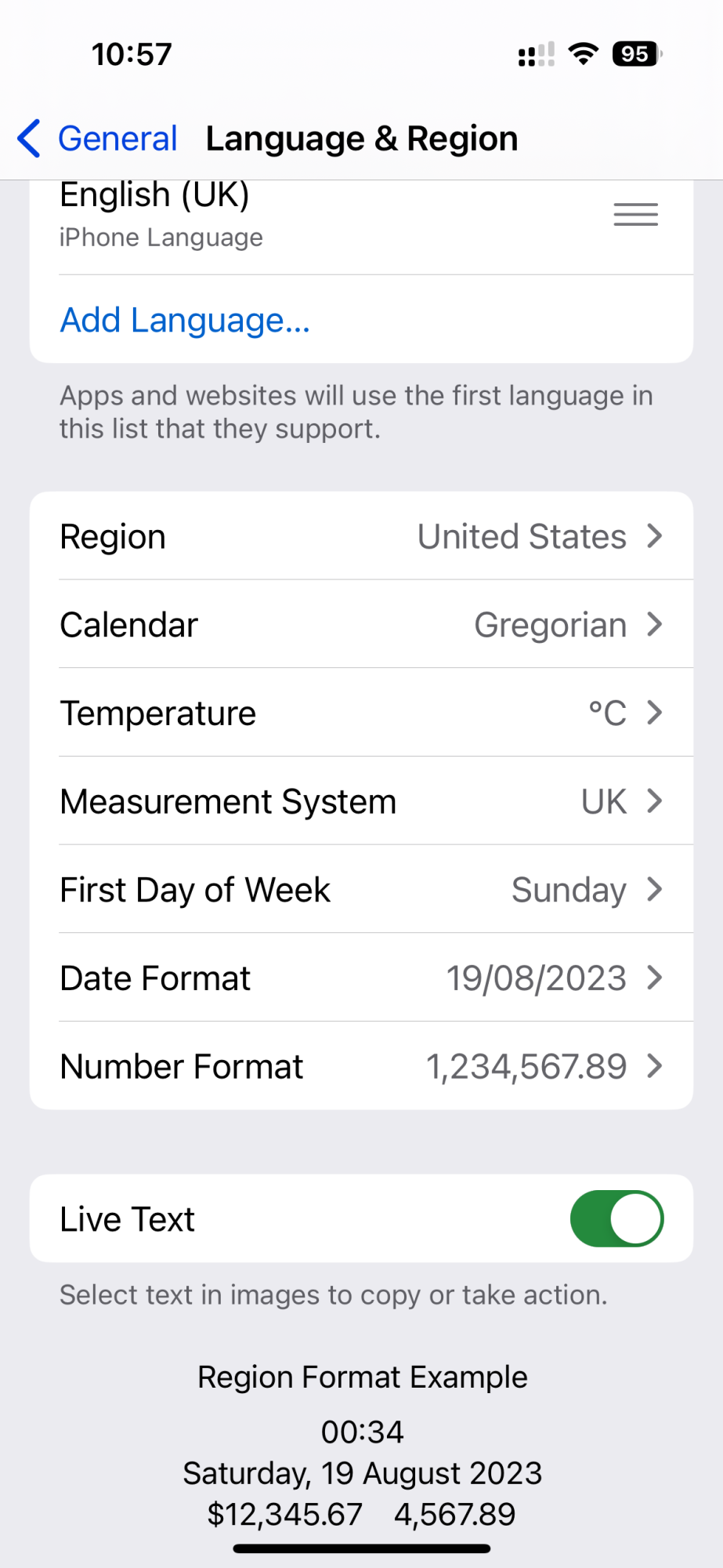 Send a screenshot of your settings. Did you reboot? It only applies the region after a reboot. You can confirm by seeing £ replaced with a $ on your keyboard.