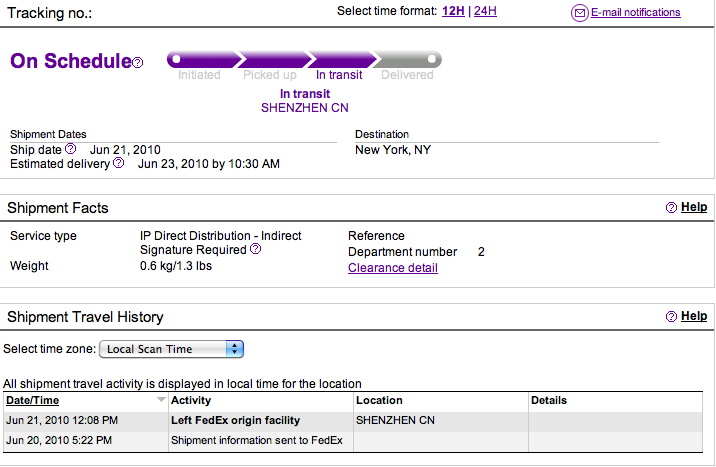 Ordered my iPhone 4 on the 15th at AT&T and I now have a ship date which is 6/17/10 (which is strange) a carrier and a tracking number but my status still says in progress. When I try to track my package though it says the information hasn't been sent to FEDEX yet and to check back later. This should be a good sign, no?