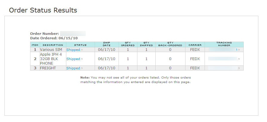 Order Date: Jun 15, 2010 at 04:07 PM PDT