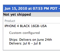 Ordered it on the cusp of them switching to July 2 shipping and this is my status. Anyone else seen this? Apple says it hasn't shipped yet and after 20 mins waiting to talk to a rep the batt on my old iPhone died.Just wondering if anyone else has seen this. Thanks!