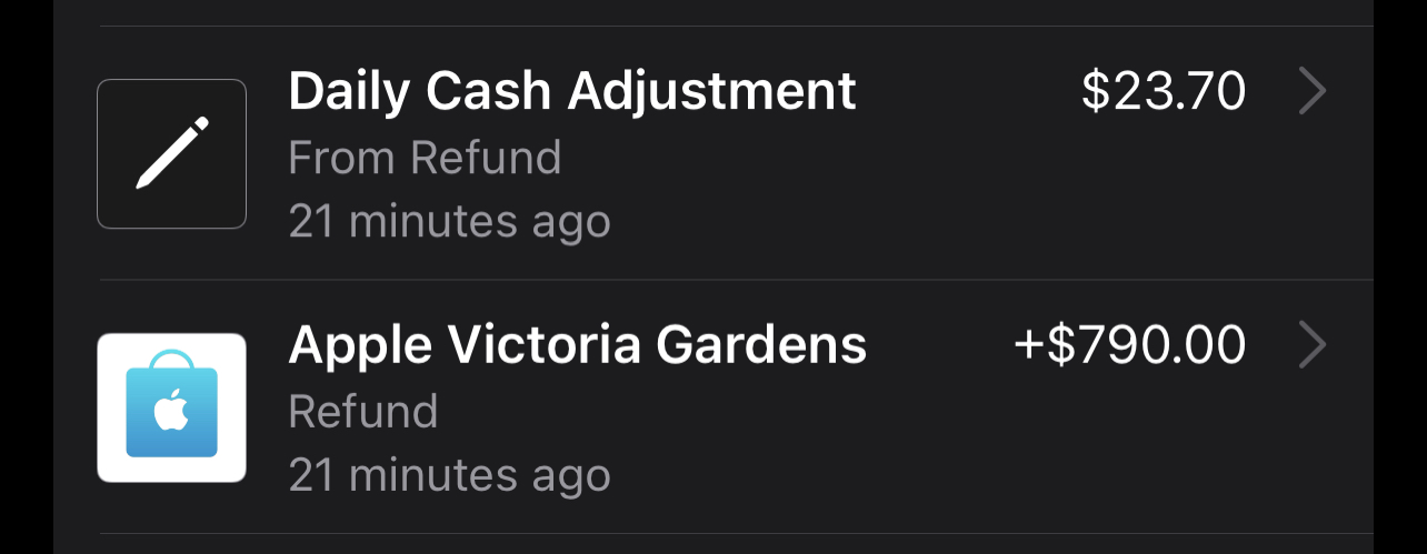 Why does my daily cash adjustment get dinged for a phone that I sold to Apple? Is this something I can dispute with Apple Card or just something I need to accept? (It's not a refund, it's Apple paying me for the phone that I traded in).