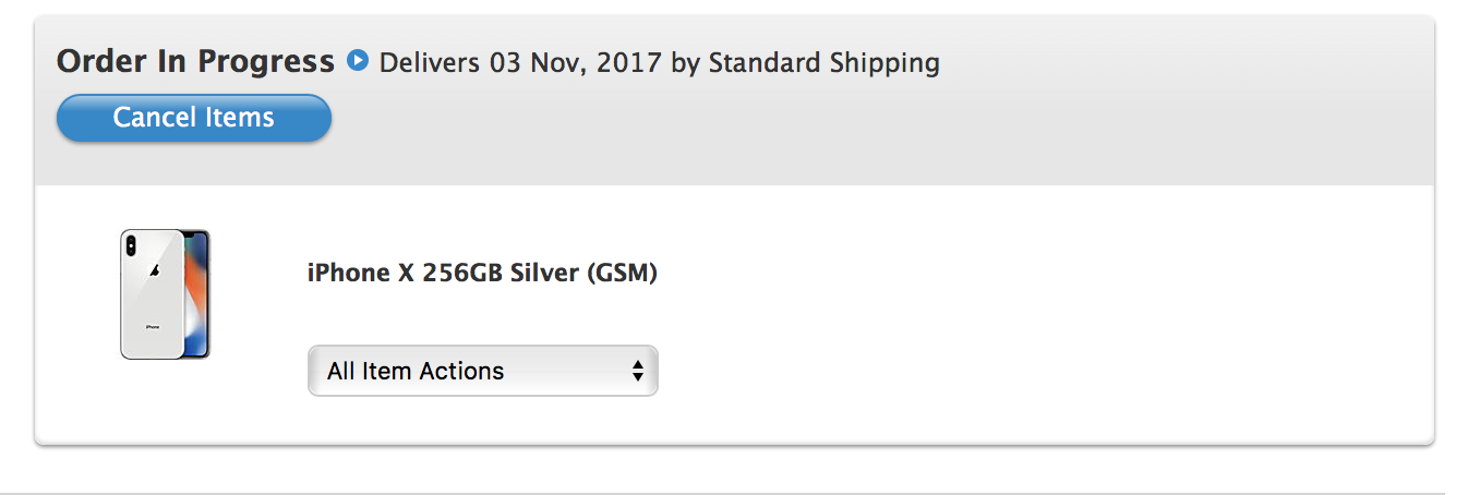 My in store pick up at Apple is for the 64GB space grey (T-Mobile) Nov. 3rd schedule checkin window is 3:00-3:30 and my delivery to the house is the silver 256 GB November 10th-17th. Now the delivery also says November 3rd