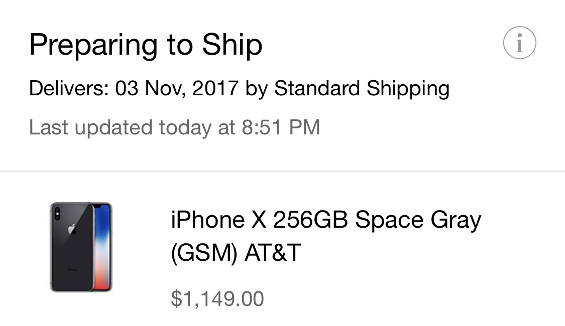 Ordered a T-Mobile iPhone X 256GB Silver (GSM)Has anyone with a Tmobile phone order via Apple gotten any sort of shipping info?