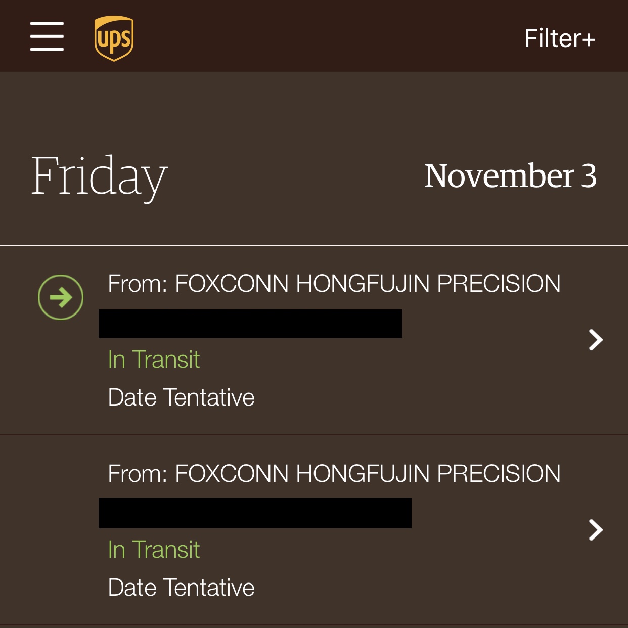 But on main tracking page it says 11/3