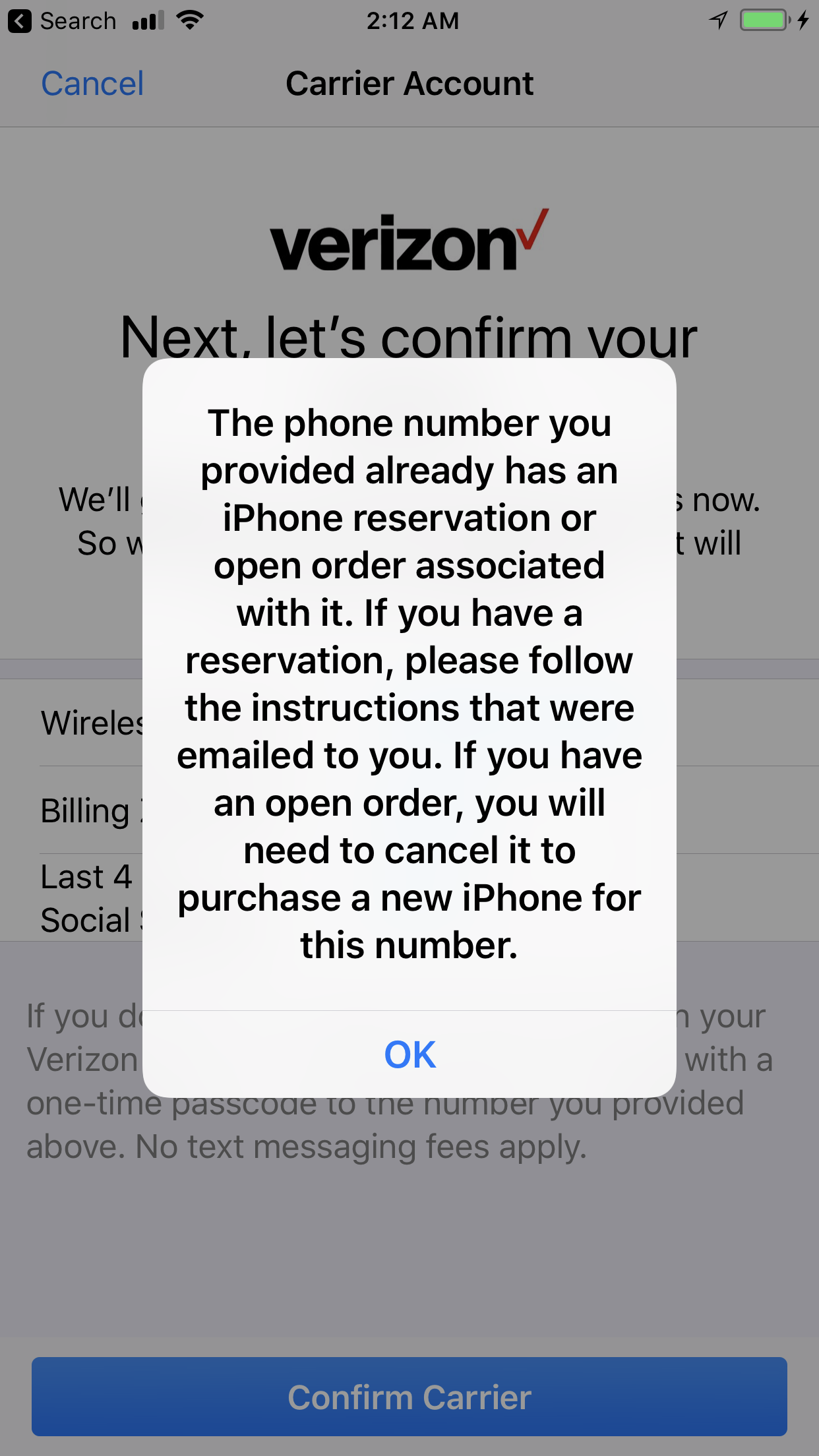 App was frozen so I went to a laptop browser and tried to do the order again. When I tried to enroll in the Apple upgrade program it wouldn’t let me, said I already had a reservation(screenshot). I have not, however, gotten any email to complete my order yet. Other people in similar situations seem to have gotten emails to complete their orders. Is this worth pursuing or do I keep my backup order- from Verizon which delivers on 11/15?