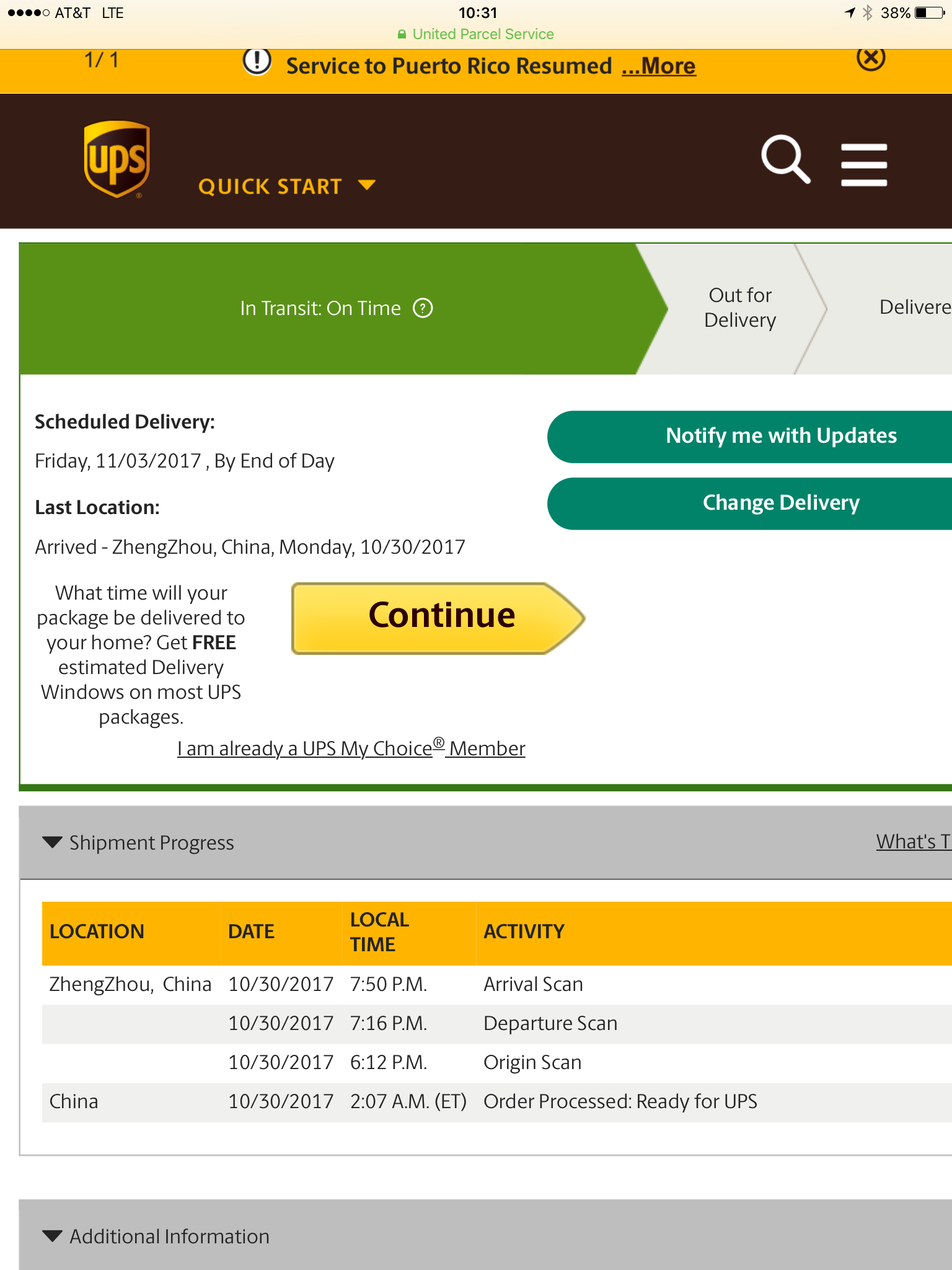nope my phone has been there since 29 Octstill in : ZhengZhou, China 30/10/2017 1:Arrival Scan