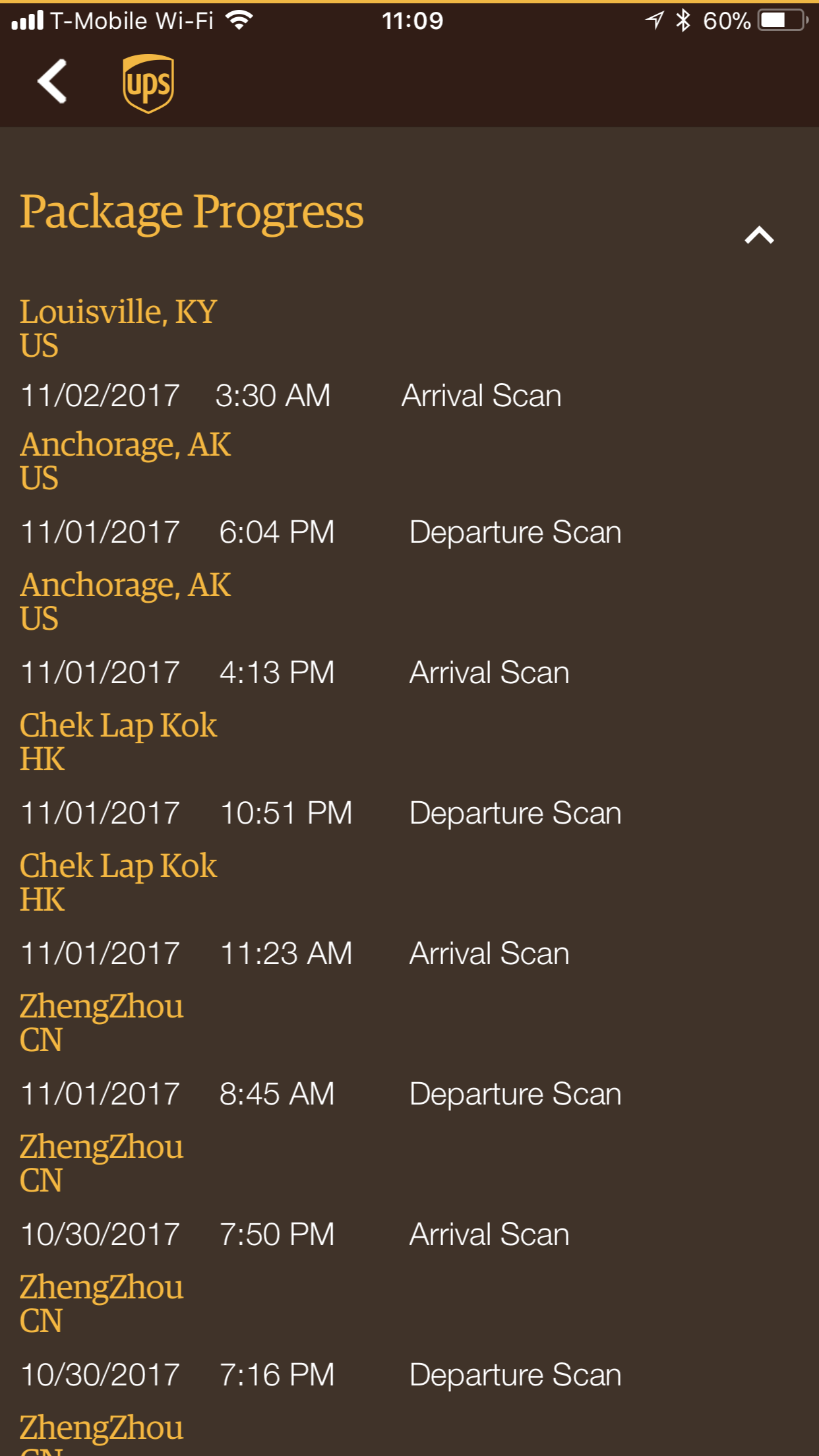 On Apple, it even shows some sort of scan on November 1. I have no November 1 scans through UPS...