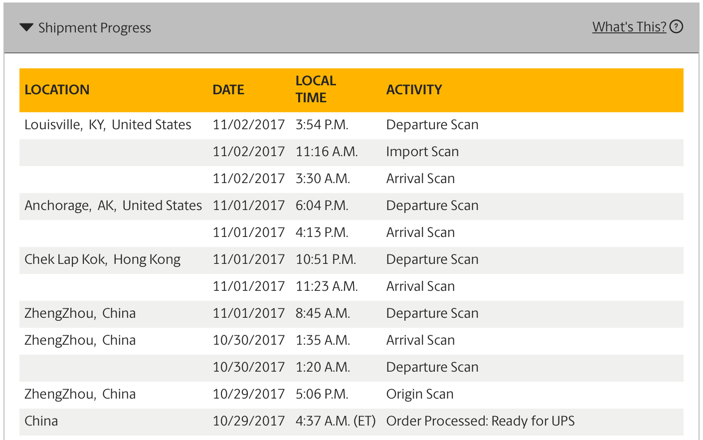 Louisville, KY, United States 11/02/2017 3:30 A.M. Arrival Scan