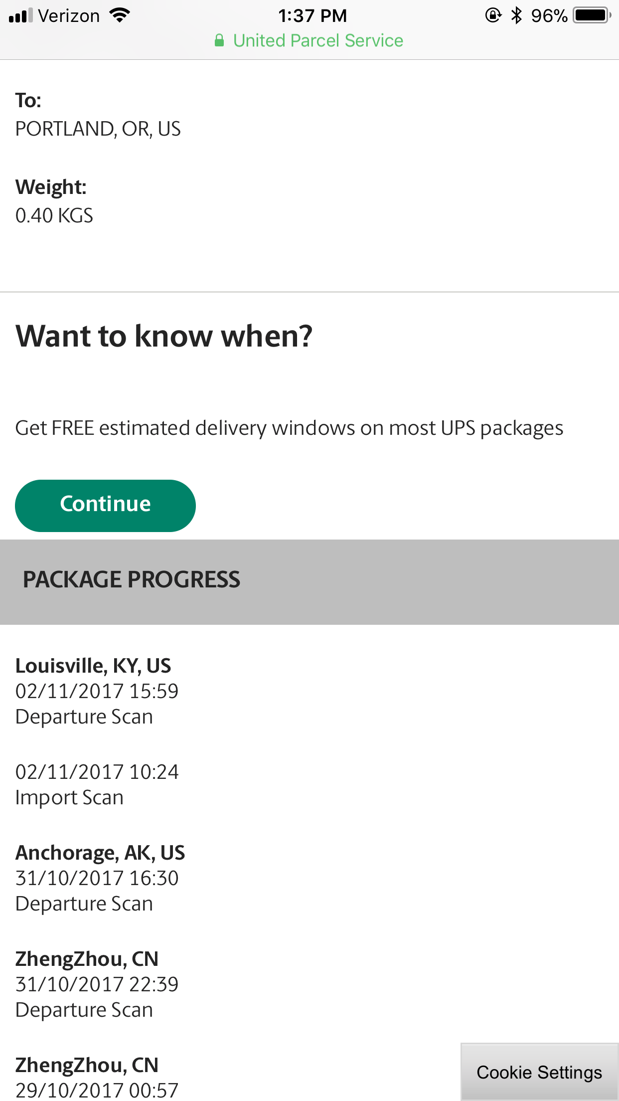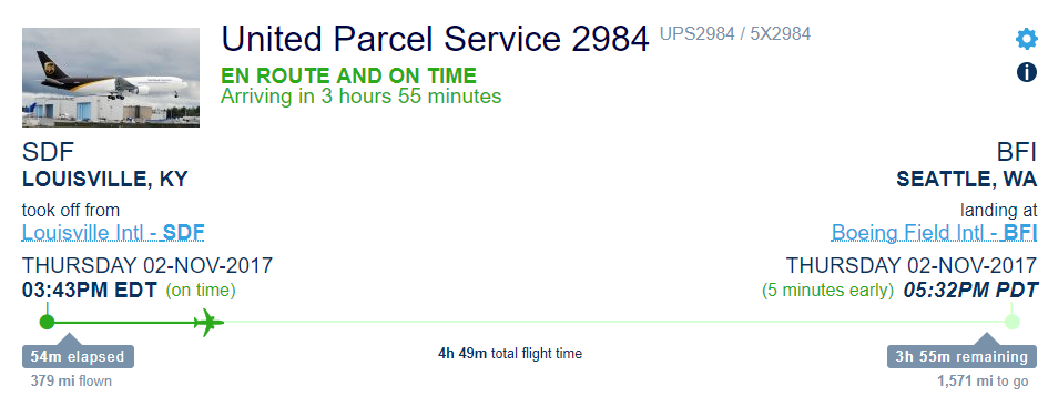 Seattle BFI, Departure Scan 3:30PM. It looks like we are on UPS 2984.