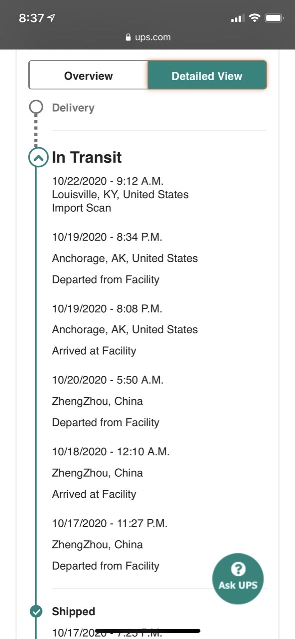 Great to see that Import Scan. After such a long dumb wait haha. This is where we will get separated. It was nice hanging with u in China and hanging out with u in KY! What’s ur final destination.Finally got that import scan!!! View attachment 971118