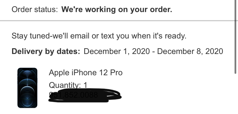 I ordered mine this morning through AT&T upgrade enrollment plan, I was very unsure if I got the right phone long story short I was at work and couldn’t contact support so I had my grandfather do it and see if I ordered the right one and they said I did order the correct one, in the order email I got it says Ive ordered Iphone 12 Pro but i dont see Max. And it says its “Delivery by Date December 1st - December 8th” but like if I were to order another Iphone12 pro max it says delivery date by august 13th so im just a bit confused.