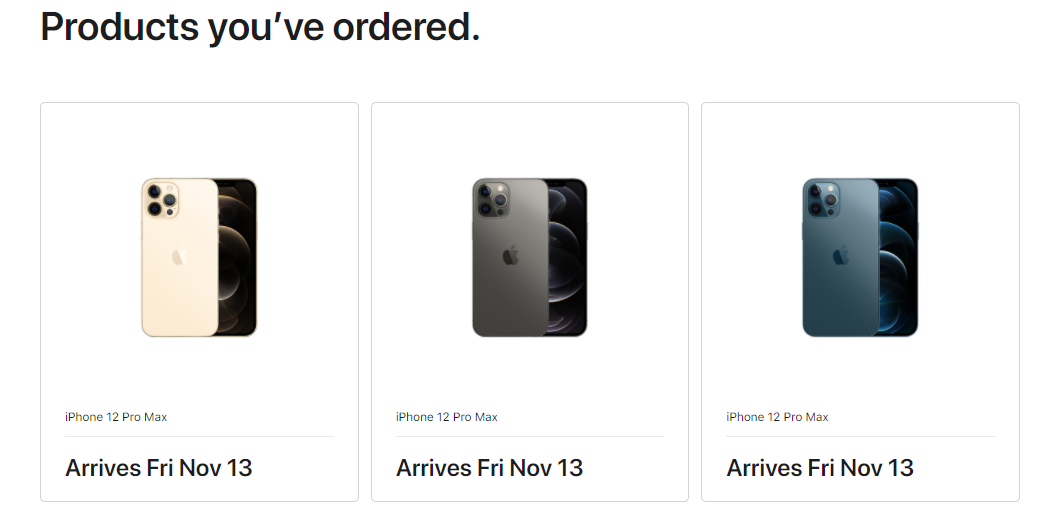 I hope they ship all 3. There was someone that ordered 2 Pros and Apple cancelled one and said due to demand he couldn't order more than one. This was one person - others had ordered two and had no issues.... I had never heard of that before...Ordered 3 256Gb Pro Max's yesterday around 9am EST (an hour after it went live), all are Preparing to Ship and one already showed up in UPS My Choice.