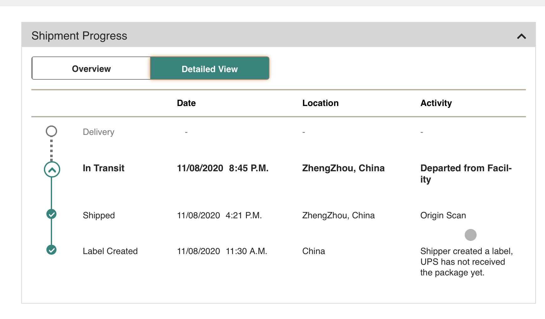 Yes, the first departed from facility scan is leaving the warehouse on it's way to the airport, which you will get another zhengzhou can with arrived at facility.I have a 12 Pro Max (ATT) Gold 256 that departed at 6:06 pm in ZhengZhou and then shows an arrived at the same facility at 8 pm same date (both on 11/7)....no movement since yesterday.