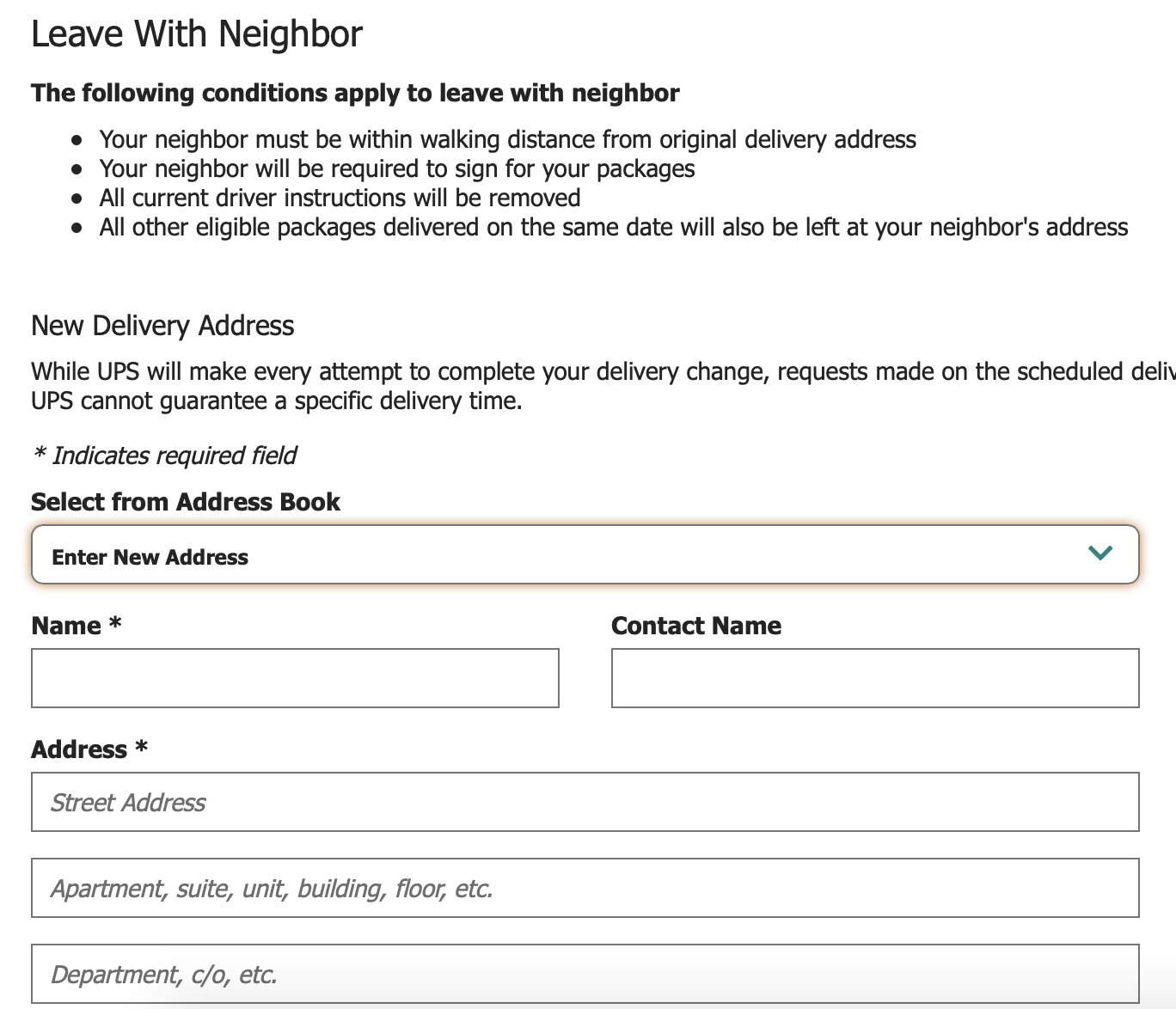 Yea. Ugh. I'll just call UPS and see what options I have.I thought of that, but it says "your neighbor must be within walking distance from original delivery address."