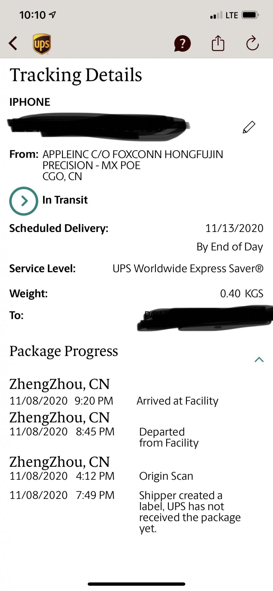 *Checks weather in ZhengZhou*UPS always labels the phone delivery as tentative from China. That gives them an out if customs takes longer or the weather is bad.