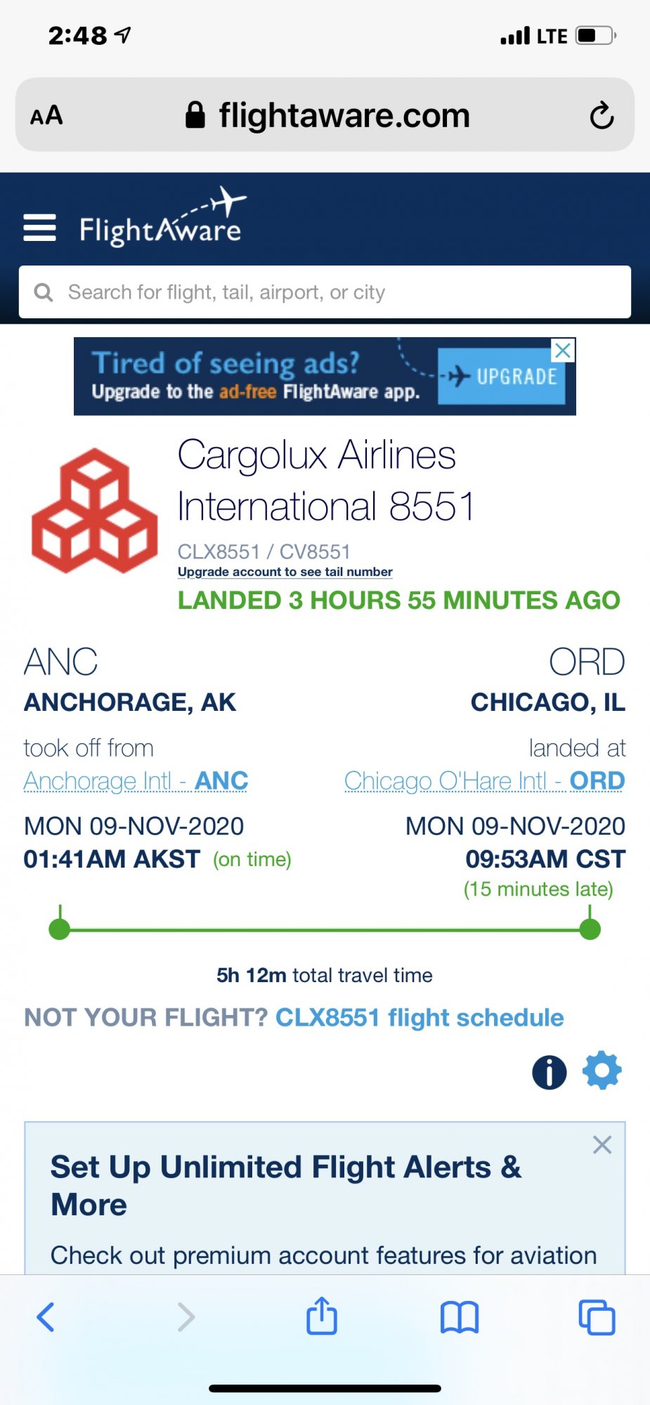 This could still be the flight. It was in Anchorage for a short stop then went on to Chicago O’Hare - could be a customs stop before going to Louisville...CargoLux Airline has taken off!!! Hoping to see new scans shortly LOL😩