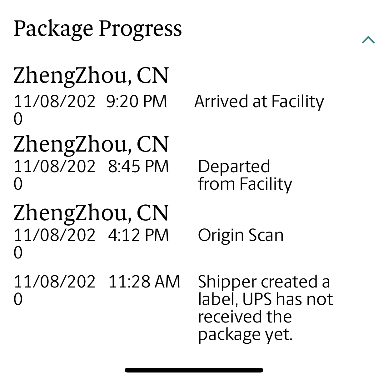 Ordered rather late, 5:45am, and it’s “arrived at facility in China”.