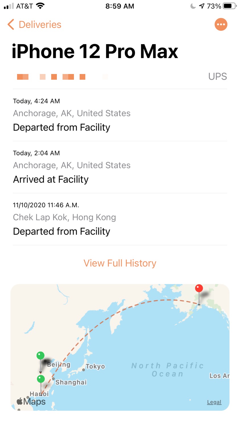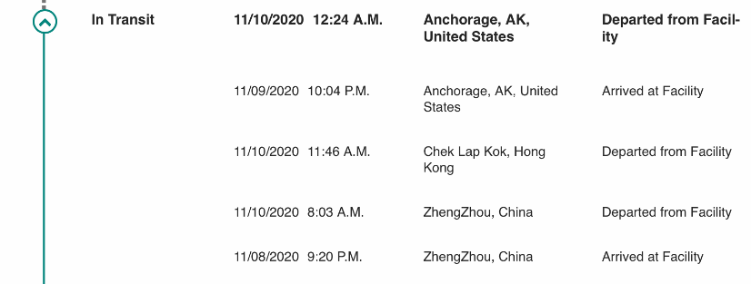Now the odd part is I have basic UPS My Choice. Just went to check it and I see an delivery for this Friday 11/13 from AI coming from China origin scan on 11/8 and departed Anchorage, AK 11/10. Although it’s delivery date is “tentative” and status says “Exception”, when I go into that entry it has a status of “in transit