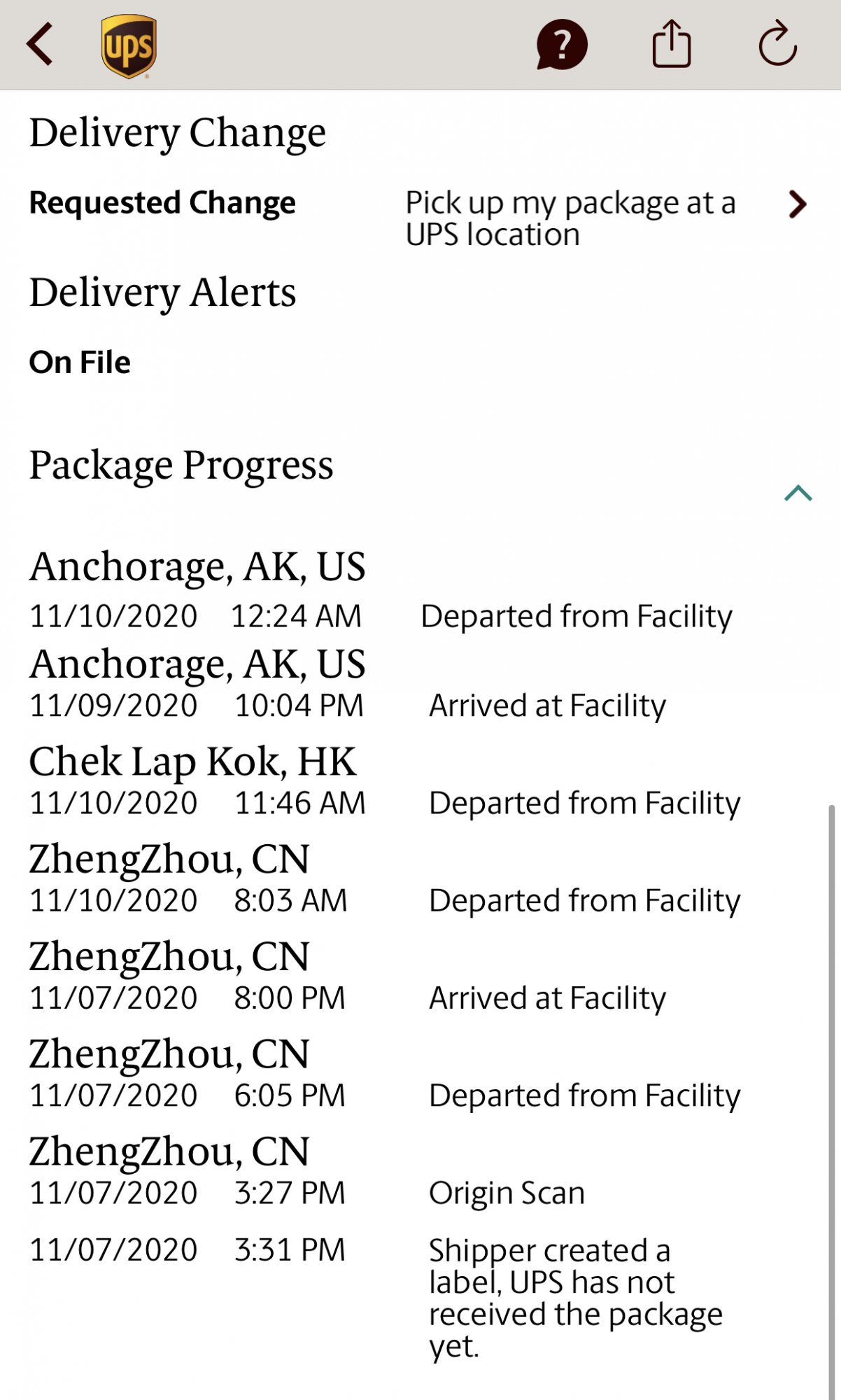 Well this was my iPhone 12 Pro movement. Arrival at airport at 11:57 AM on 10/18 am and departed 10/20. So likely for the Pro Max we likely won't see movement. Noticed that I also requested a UPS CC pick up around that time?