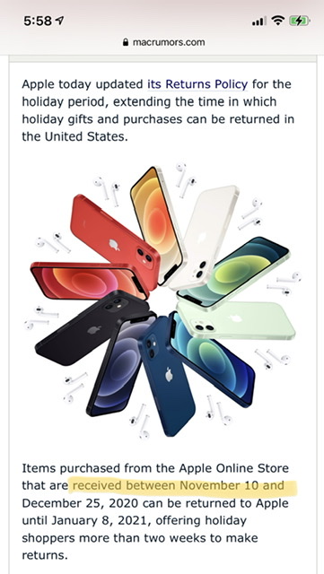 Looks likes anything purchased after today qualifies for a holiday return period.