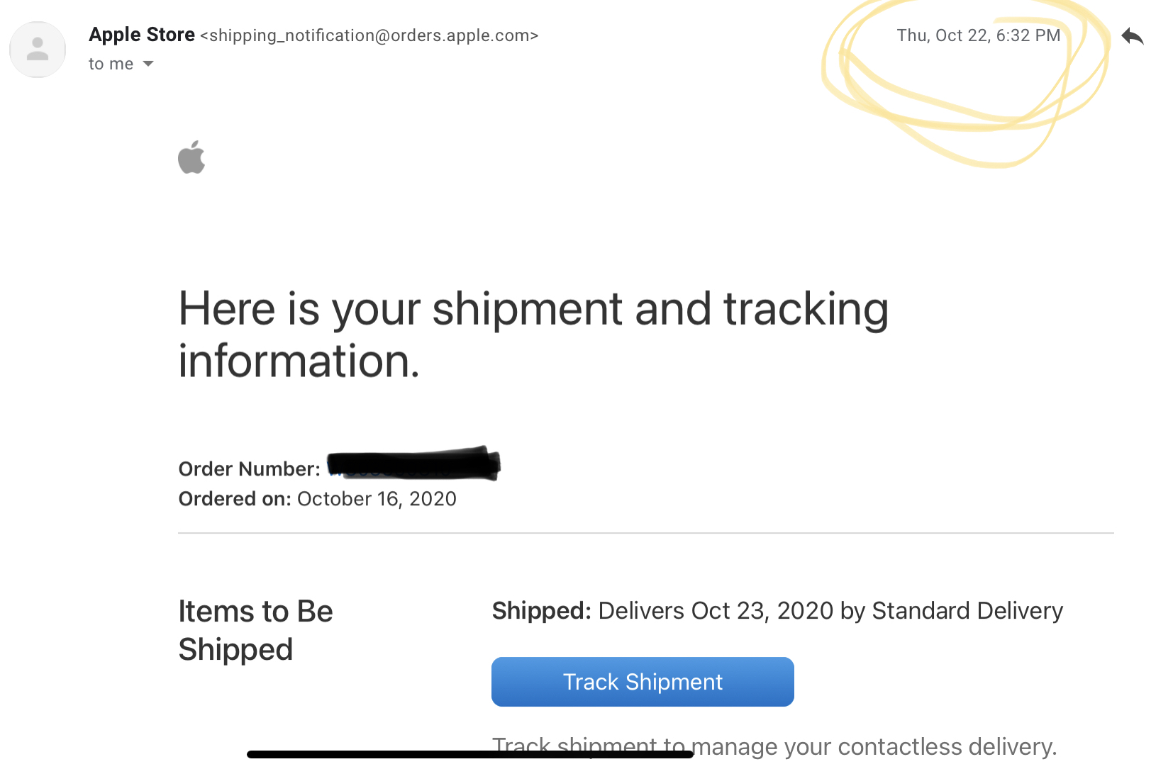 Apple didn’t notify my that my iPhone 12 Pro had shipped until the day before the delivery.