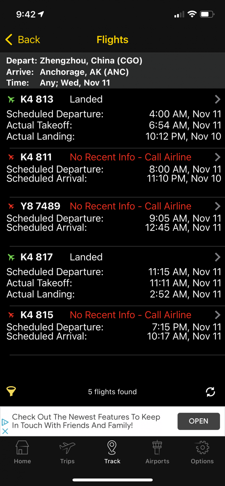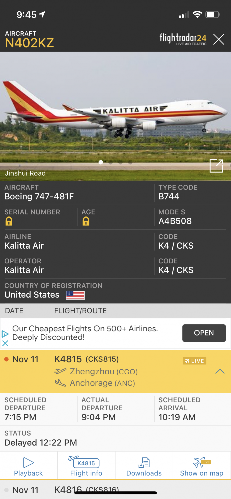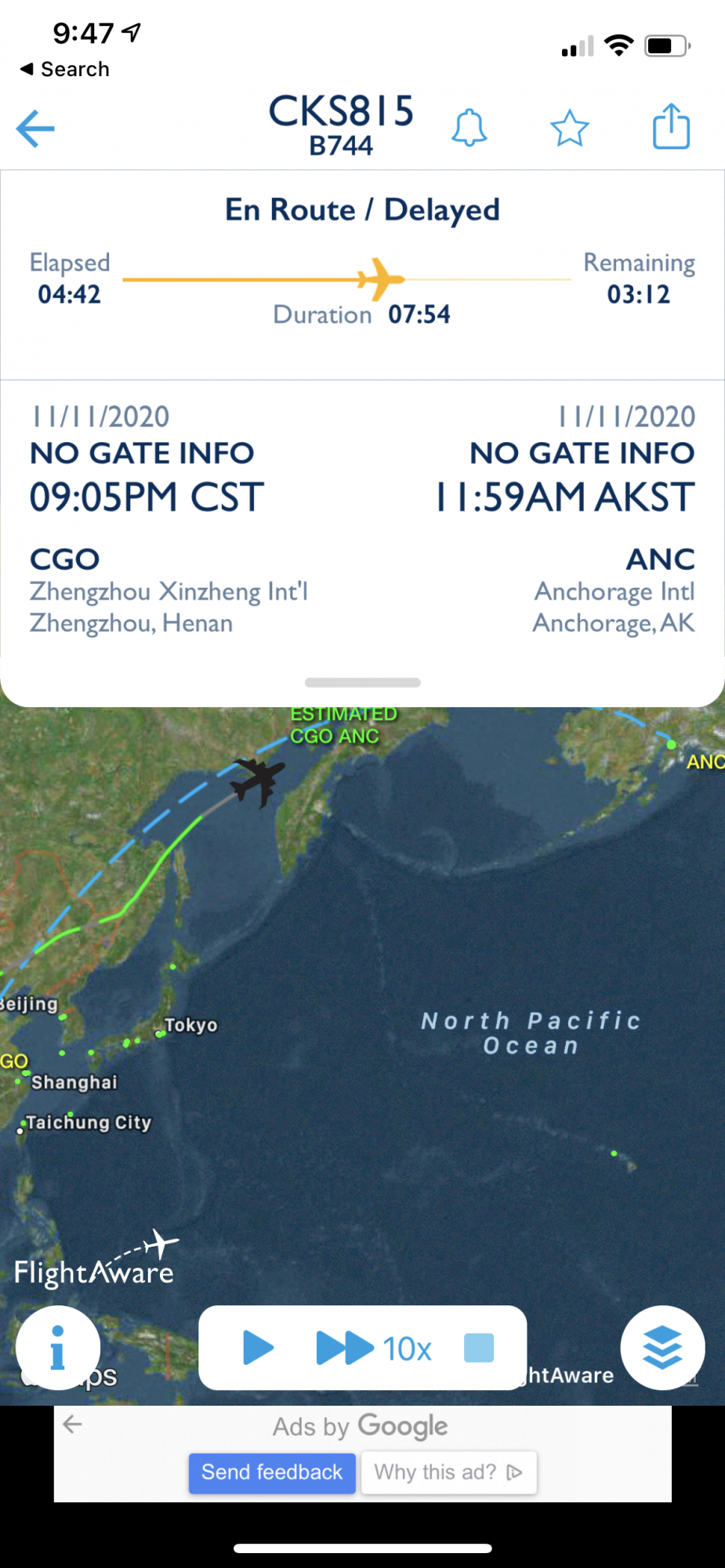 One flight is on air right now. However I don’t think anyone of us are traveling right now from CGO (China) >>> PANC (Alaska). Expected to arrive in 3 hours.