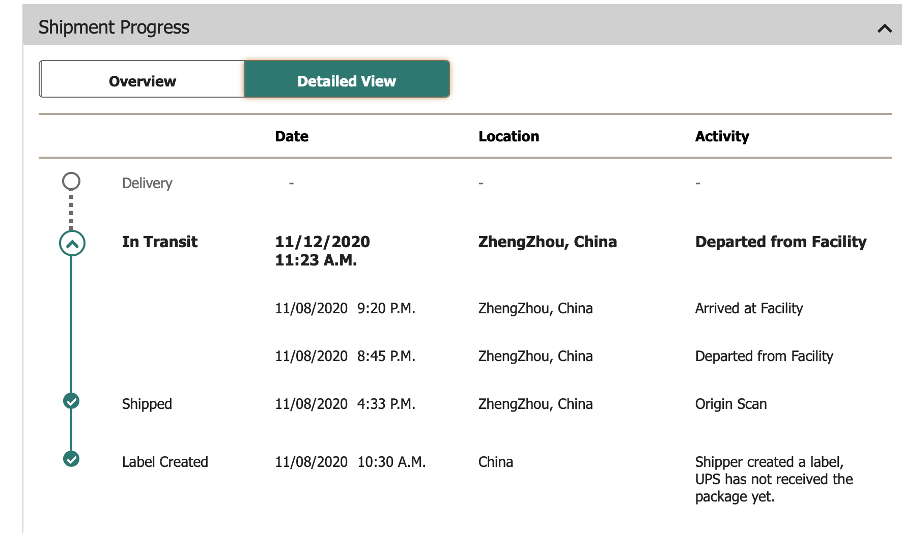 Thanks for the information! I really should go get my work done for right now but i just can't stop myself checking UPS lmao.They can leave as late as Thursday night in China and get to Louisville for distribution almost anywhere in the continental US by midnight EST Thursday. Happens every year, nothing to worry about.