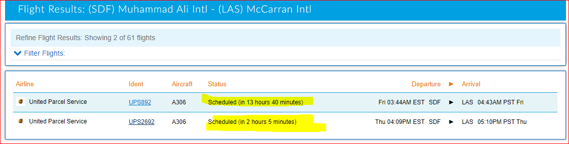 Two scheduled flights showed up from UPS. One is departing in 2 hours and the other is departing in 13 hours. I'm 99% sure my iPhone will be on the 2nd flight which is scheduled to depart 13 hours. Still waiting for KY scan and Import scan.