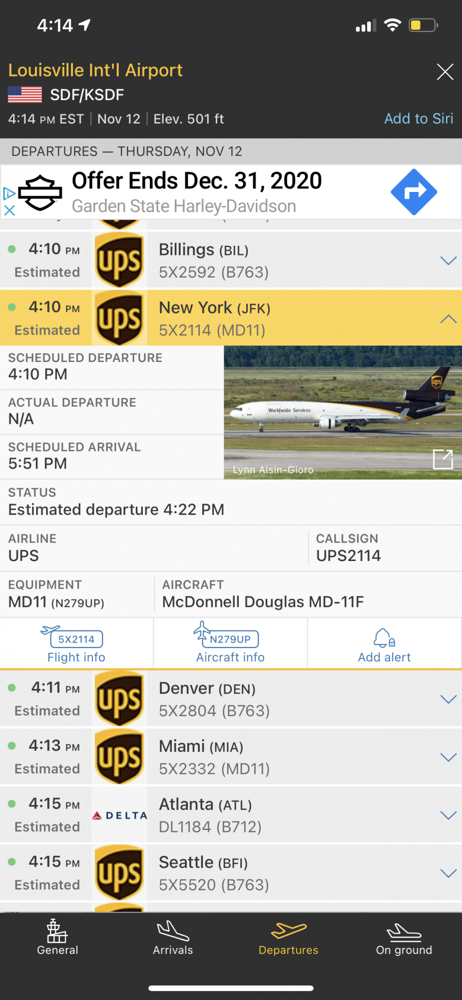 UPS has one of ours with a 2:22pm departure out of SDF