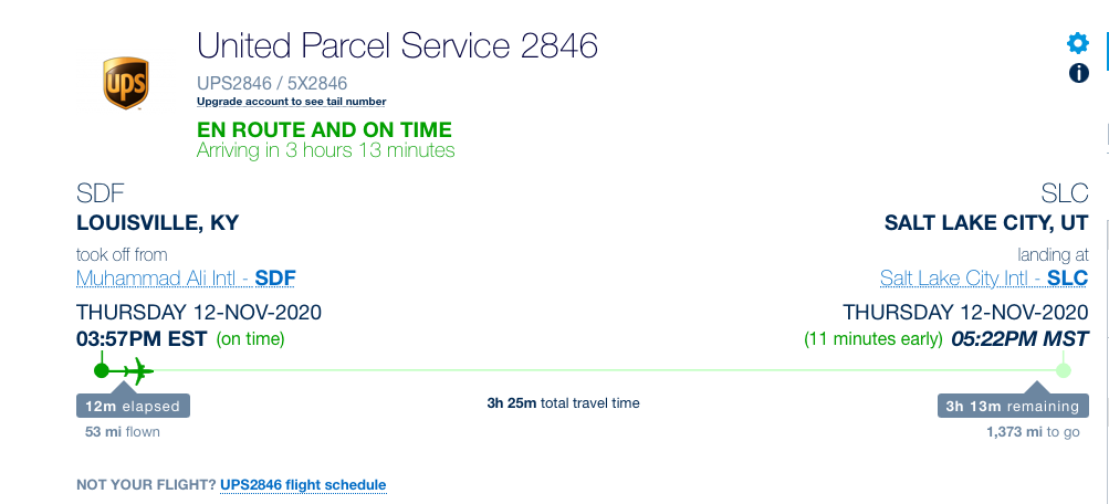 Dang it! Both of mine missed that flight. Hopefully they are on the next flight to SLC in ~3 hours.Finally departed from facility on the following flight