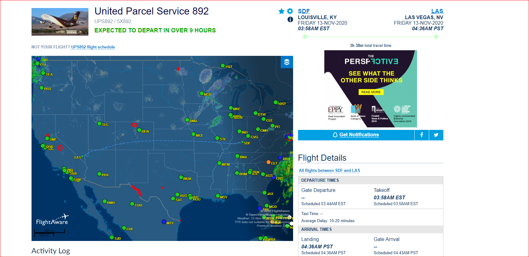 UPS 892 - EXPECTED TO DEPART IN 09 HOURS. Las Vegas, Nevada.