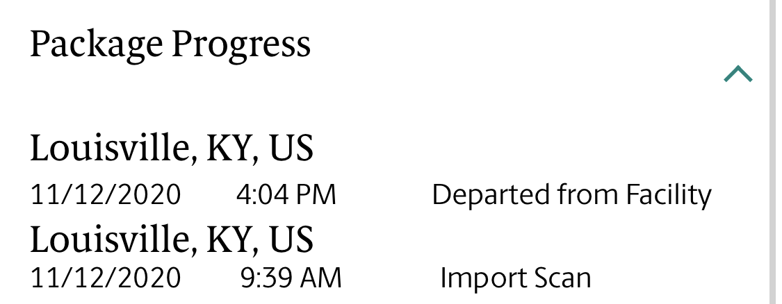 You’re in Louisville, you’re fine. Give it time to update still. I’m waiting for my import departure scans too.