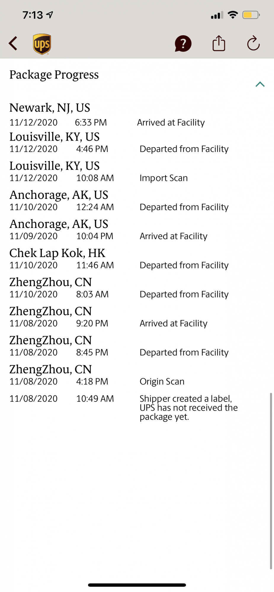 Any help would be great. Just spoke with UPS and Apple and my last scan was from Alaska at 2:30 AM for departure. They just told me to wait a few more hours to get more details. When I called apple the voice over has mentioned they see a delay with my package but all delivery estimates are still for tomorrow. Any help?