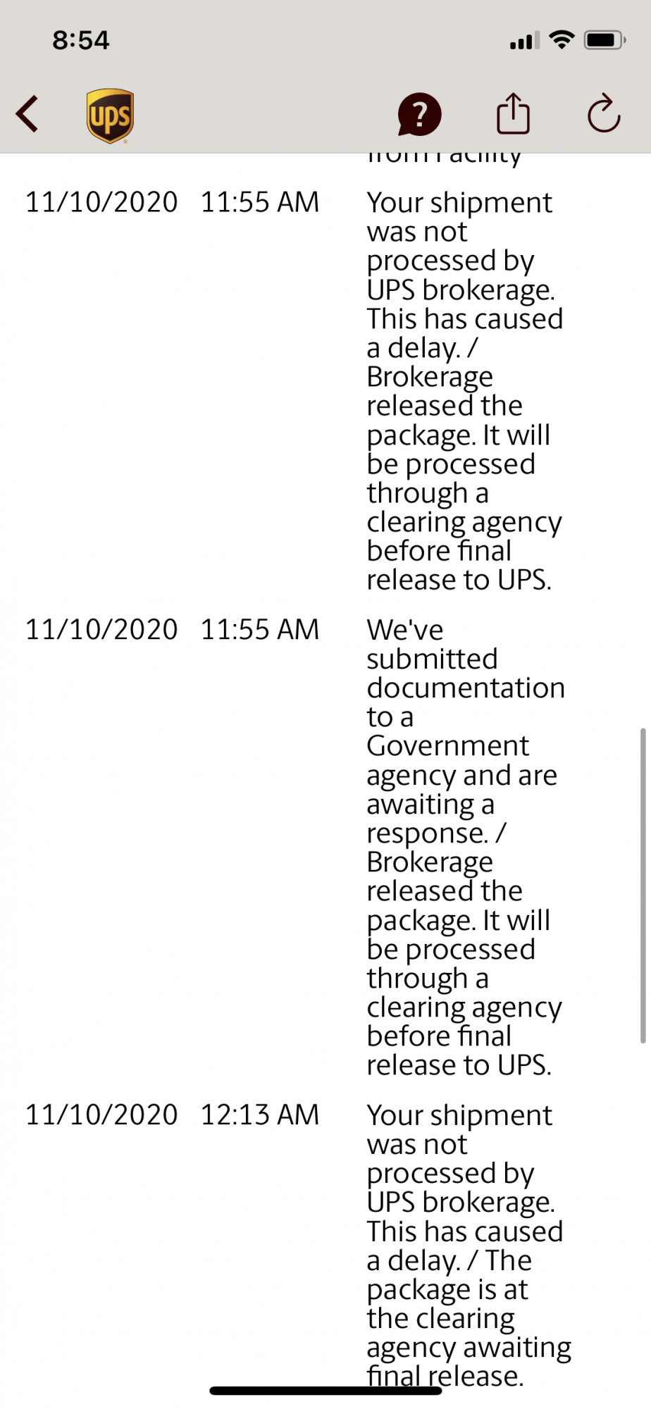 Let’s all vow to keep a screenshot to help ease our angst this time next yearLooks like UPS has just added some new, more detailed info to the past dates on my tracking. Interesting.