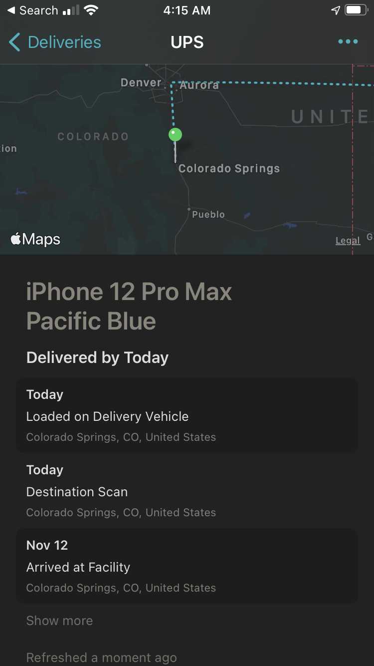 Yesterday I had a package iPhone 12 Pro that got to Ontario, CA around 5 PM then it left at 5AM and was not out for delivery until 11:30 AM. I got the phone at 1:30 PM