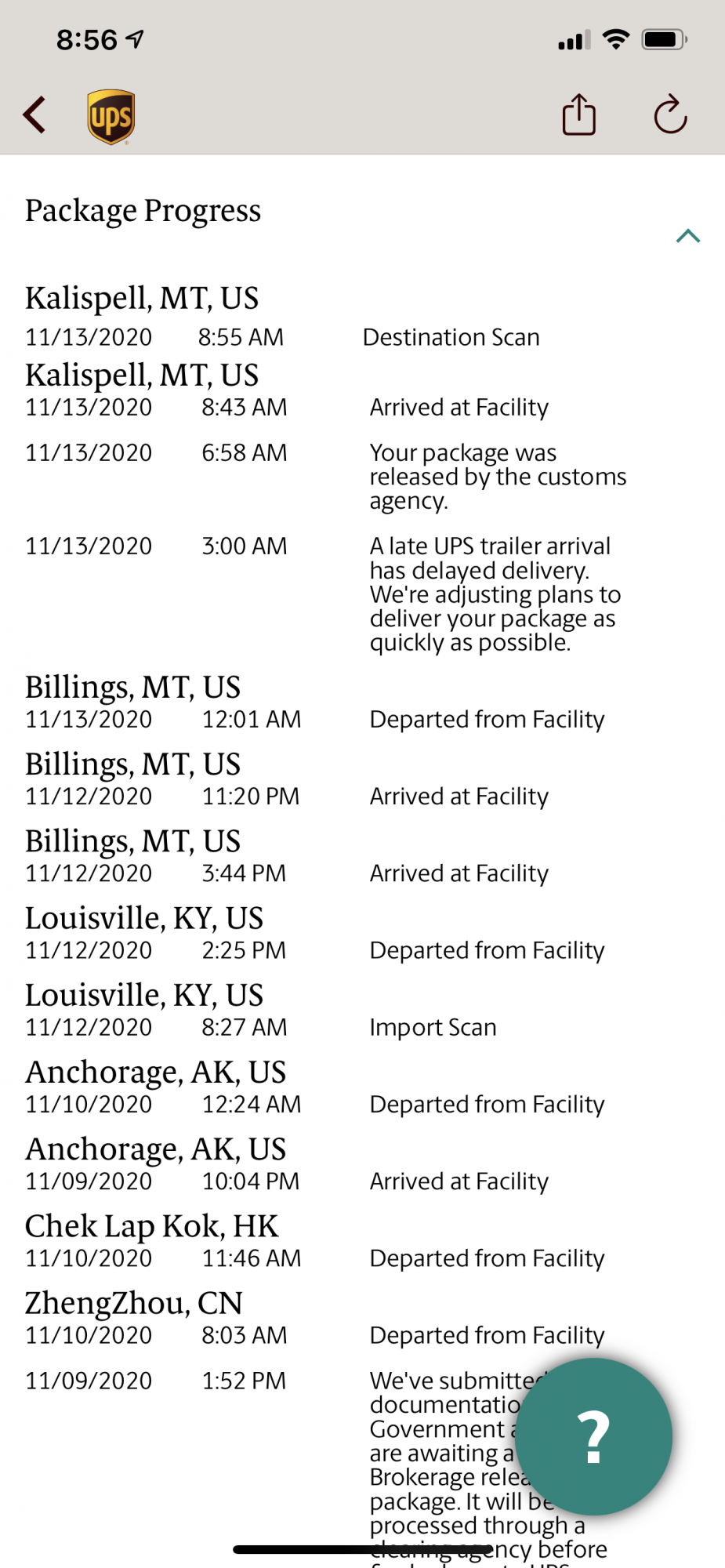 Mine is promised to 9:00 PM. UPS is always late in my hood. One year I didn't get my iPhone until 7 PM. It was an exhausting day doing nothing but waiting and staring. lolSame here, less than quarter mile then it went further east and now south a mile or two slowly circling back in my direction . well not promised before noon to 4 PM anyway LOL