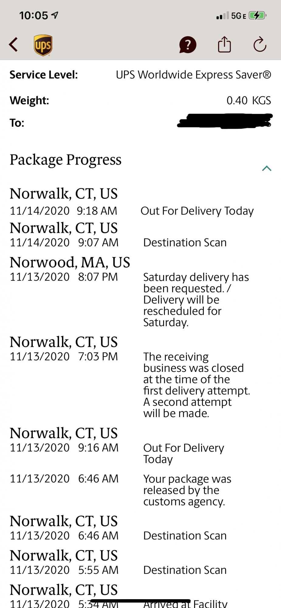 Did you do anything extra to get Saturday delivery or did it just switched from Monday to Saturday today? I just have a destination scan since 6 AM and it’s in my local upsI woke up to my phone being out for delivery this morning. It was attempted after 7pm last night at my office. Luckily my dad is there to sign for it and he will drop it off to me later today.