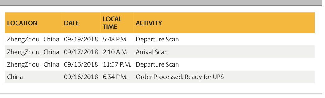 China 09/16/2018 6:38 P.M. Order Processed: Ready for UPS