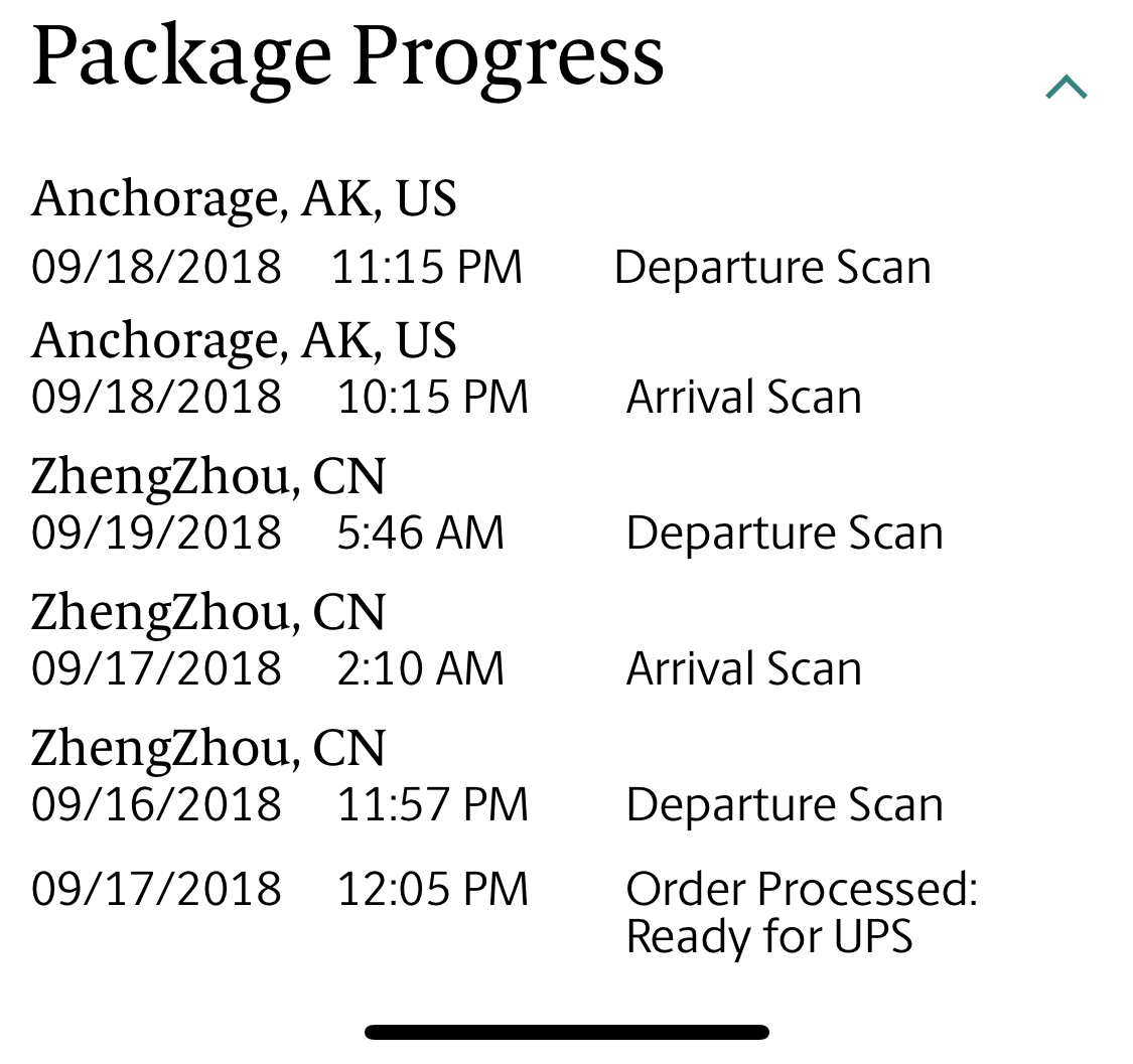 China 09/17/2018 2:30 A.M. Order Processed: Ready for UPS