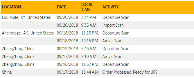 Sigh. While my watch has been reporting in regularly and is leaving Louisville for points south, my phone has been utterly silent since it was scanned for export on 9/18 in Shenzhen.