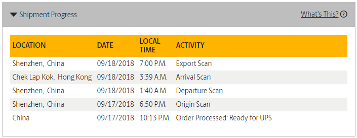 I have exactly the same thing, right down to the times (except the original China order processed time).