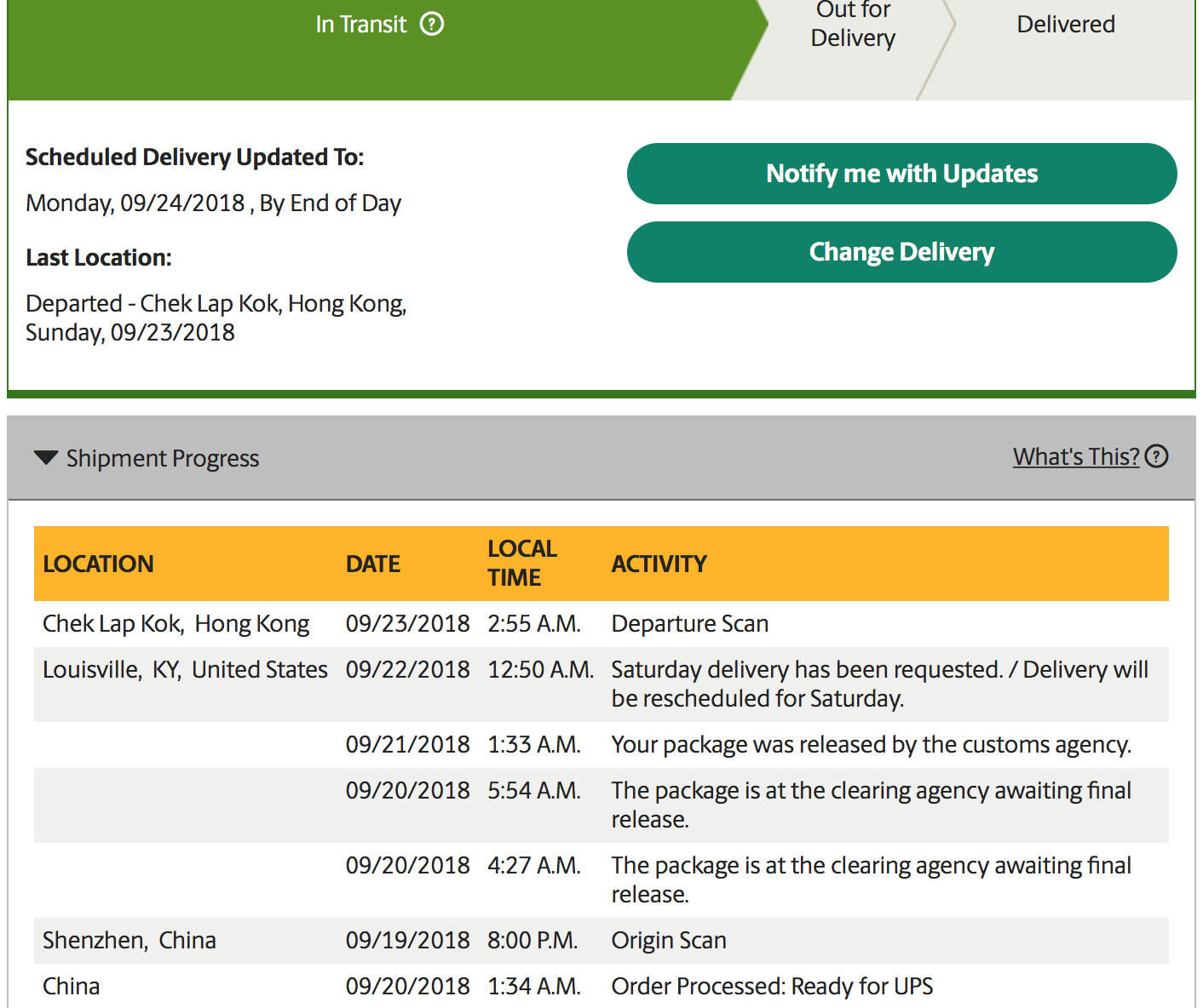 You win the customer of the year award. You do realize you’re hurting apple and not UPS right? UPS still gets paid whether your phone is delivered.
