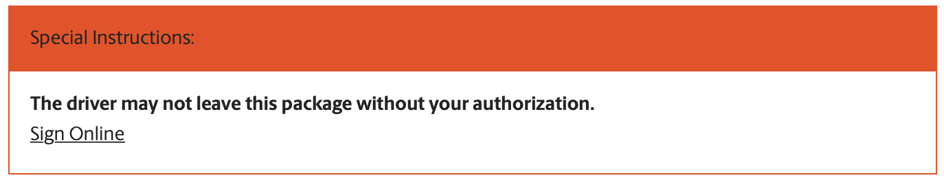 I have that message. I think it means someone has to sign for it.