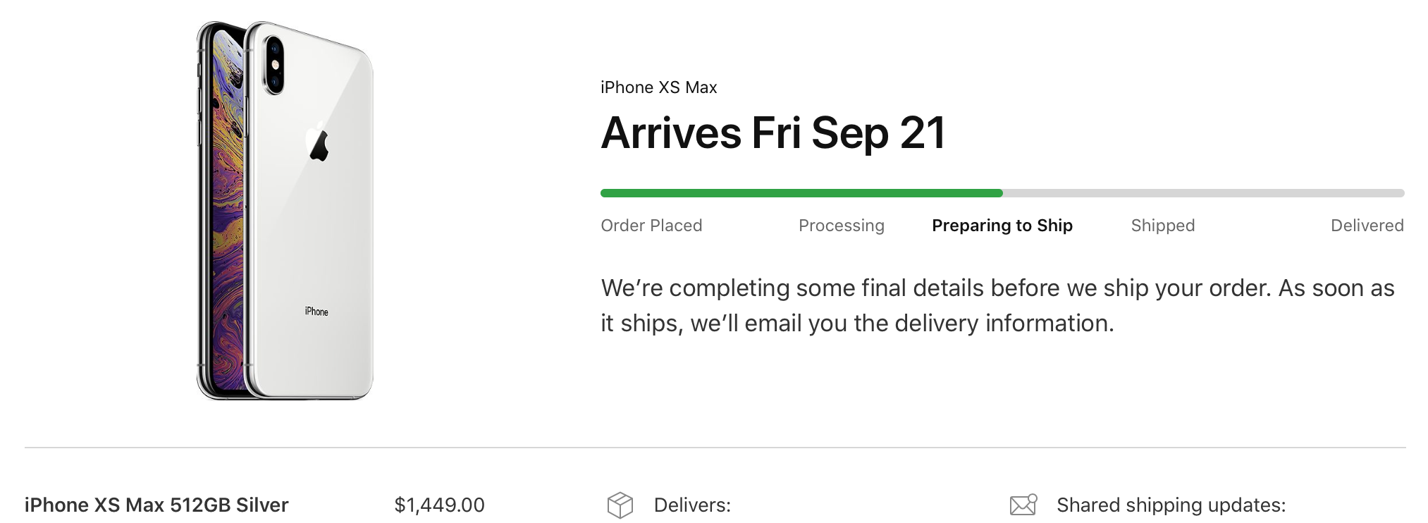 I thought it was strange that Apple.com says preparing for shipment when other people had tracking via UPS my choice. Nothing showed up in my own UPS mychoice account where I get alerted a day before a package is arriving at home or work, so I tracked by reference with the order # minus the last 2 digits.