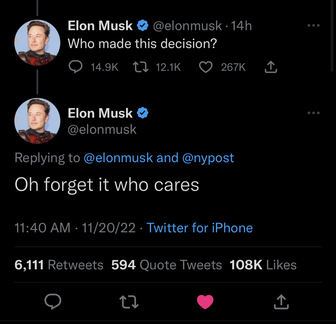 sorry but no it’s an overreaction virtue signalingWhen people like Phil and news organizations stop using the platform, you know there's a huge problem. Unfortunately Musk has head up his arse and is unlikely to notice this and continue making stupid decisions until the whole thing collapses on his head.