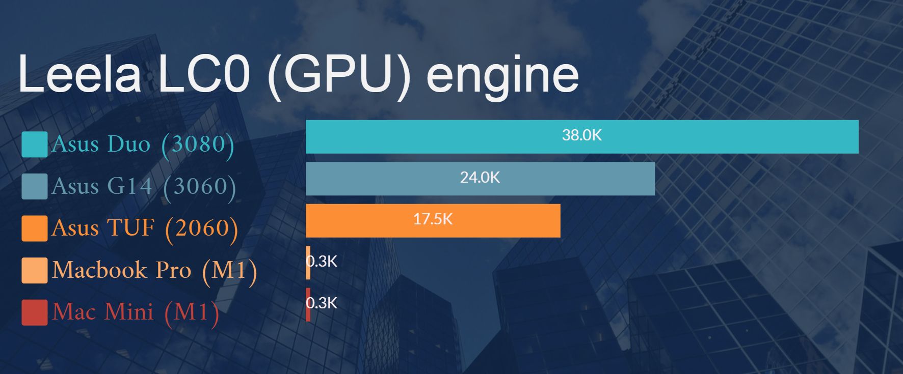 Given the known GPU compute performance of the M1 pro and Max I’m fairly certain that LC0 is not using the GPU on the M1 - if I have time tomorrow I’ll run it on my M1 Mac and check GPU usage.Thats great.. Reality is always more interesting than wishful thinking from fanboys...