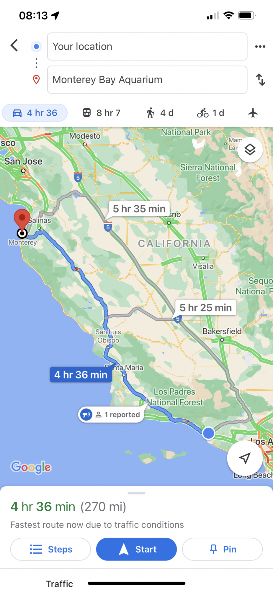 Recent trip to Napa Ca. I wanted to stop at Monterey Bay Aquarium, Winchester House, and Golden Gate Park on my trip up and planned for two days. In Google Maps I can place the entire trip with multiple stops adjusting on the fly as traffic or other aspects change. I cannot do that in Apple Maps. I wanted to do the US 1 to Monterey but AM would not let me even choose the route on either my iPad or iPhone. Surprisingly GM would not either on an Apple device but I could pick a midtrip point like Moonstone to force it on the map. However it would allow GM to mapit on my Android device. (see pics below)