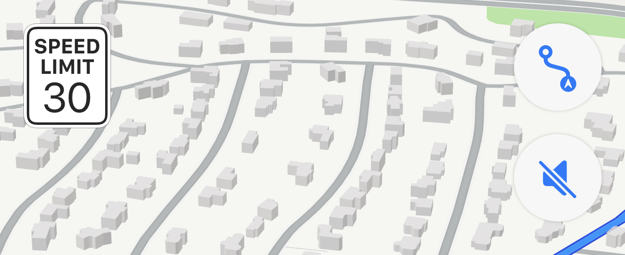 4) Highways -- camera is zoomed out just far enough that the 3D buildings disappear, and angled downward towards your car, such that no horizon is visible.