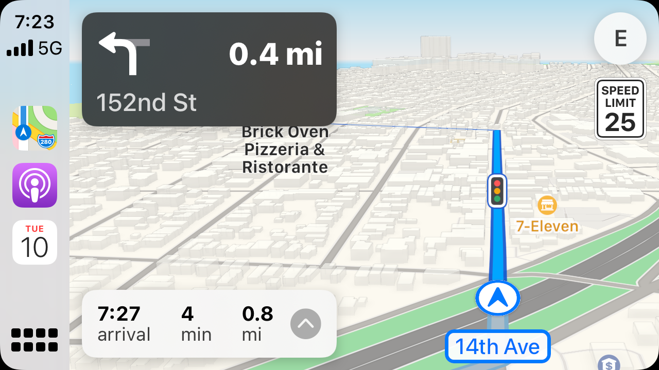Apple Maps navigation in CarPlay has four standard views, depending on the type of road you're driving on.